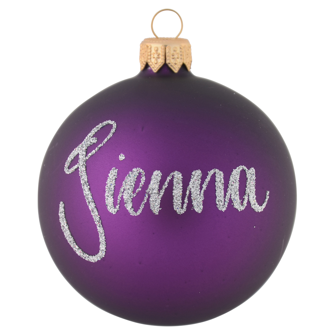 Go beyond the traditional red and green holiday colours with our personalised glass Christmas bauble in a deep, rich, purple. Our artists will add the custom text of your choice, creating an ornament you will treasure for years to come. 8cm in diameter, made from hand-blown glass by artisans in Poland.